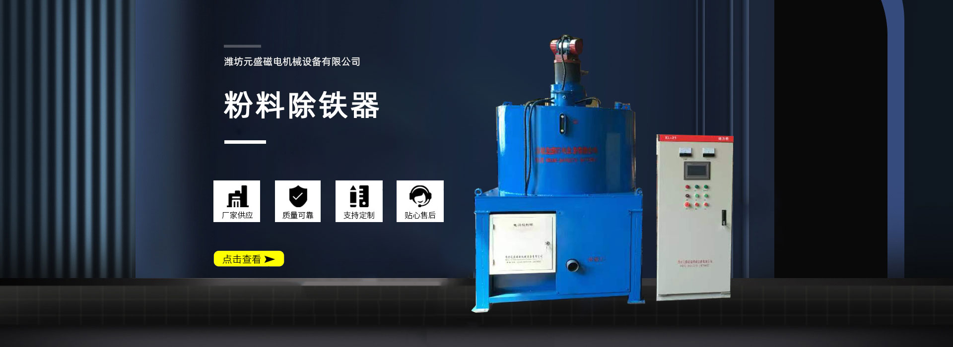 濰坊元盛磁電機(jī)械設(shè)備有限公司致力于金屬探測(cè)、磁選、除鐵、微機(jī)計(jì)量、微機(jī)控制技術(shù)的研究和開發(fā),并已形成系列產(chǎn)品。主要產(chǎn)品有:各種型號(hào)的金屬探測(cè)儀, 電振機(jī),電磁除鐵器、永磁除鐵器,磁選機(jī),輸送機(jī),微機(jī)計(jì)量設(shè)備,水泥微機(jī)配料、預(yù)加水成球系統(tǒng)等。產(chǎn)品廣泛用于建材、化工、冶金、礦山、玻璃、陶瓷、糧食、食品等行業(yè),…… “質(zhì)量良好、信譽(yù)良好、用戶良好”是本廠的經(jīng)營(yíng)宗旨,我廠竭誠(chéng)歡迎各地用戶蒞臨考察,洽談業(yè)務(wù)。